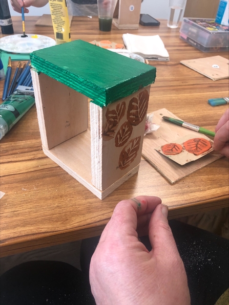 The hospital originally got in touch with us to find out how patients could get involved in nature. However, when we went to chat with the patients, it wasn’t trips out that were a priority for them but instead they wanted to see the ward gardens improved with more native plants and more wildlife! Beyond the walls of the garden they had seen so many insects, birds and even foxes, but none of the wildlife came into the ward gardens space. From these initial discussions it was clear that we were all keen to work together to improve the two ward gardens. Using ideas from the patients, sharing our knowledge and working with the staff we set about finding out what was practical to in the space and devising some plans. Led by the patients ideas we began some creative workshops to support the patients to make willow bird feeders and bee homes for the gardens.