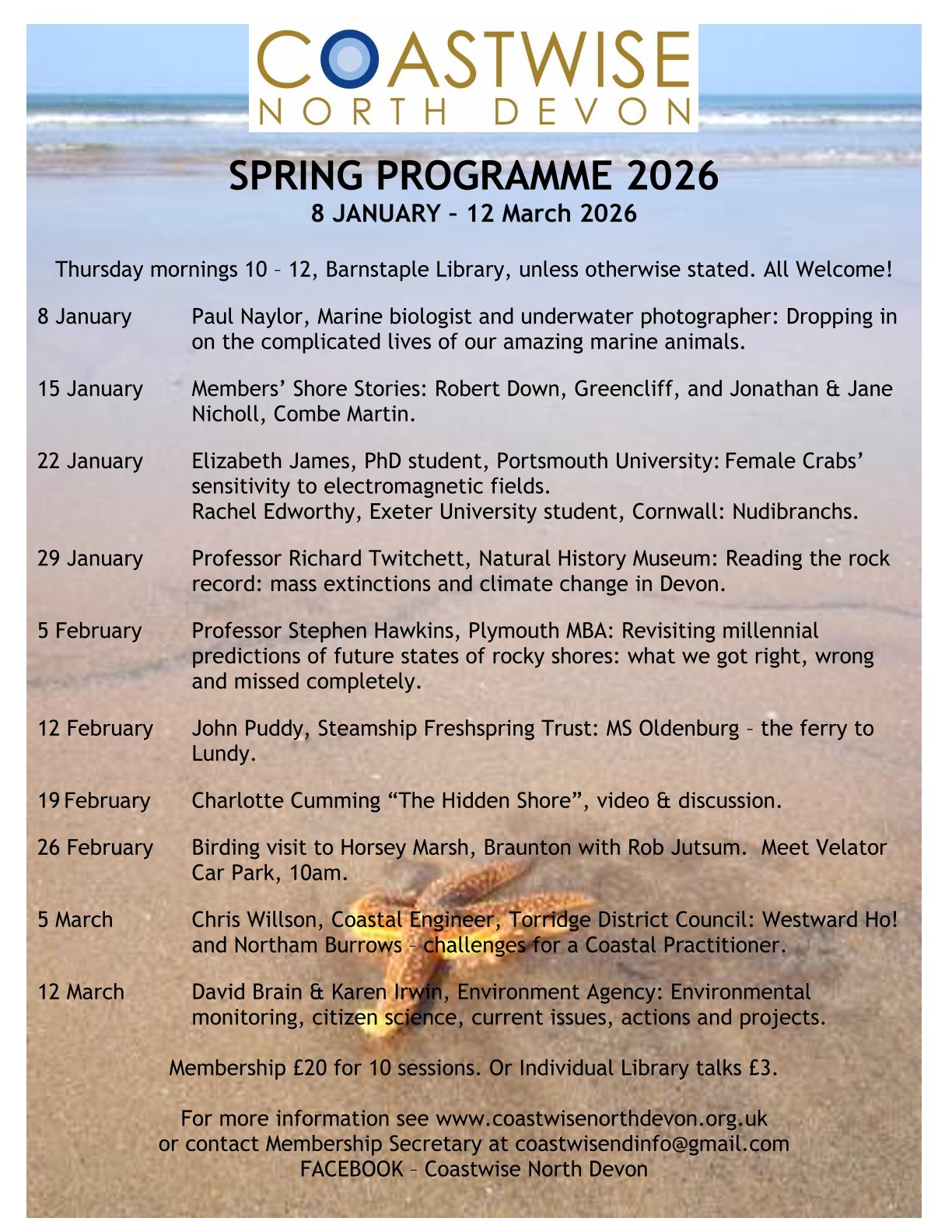Coastwise North Devon - Spring Programme of events and talks (January-March)