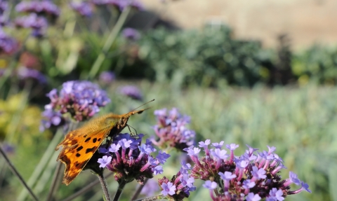 Comma butterfly on verbena flowers