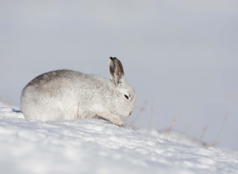 The mountain hare lives in the Scottish Highlands and the north of England. They are renowned for turning white in winter to match their upland surroundings.